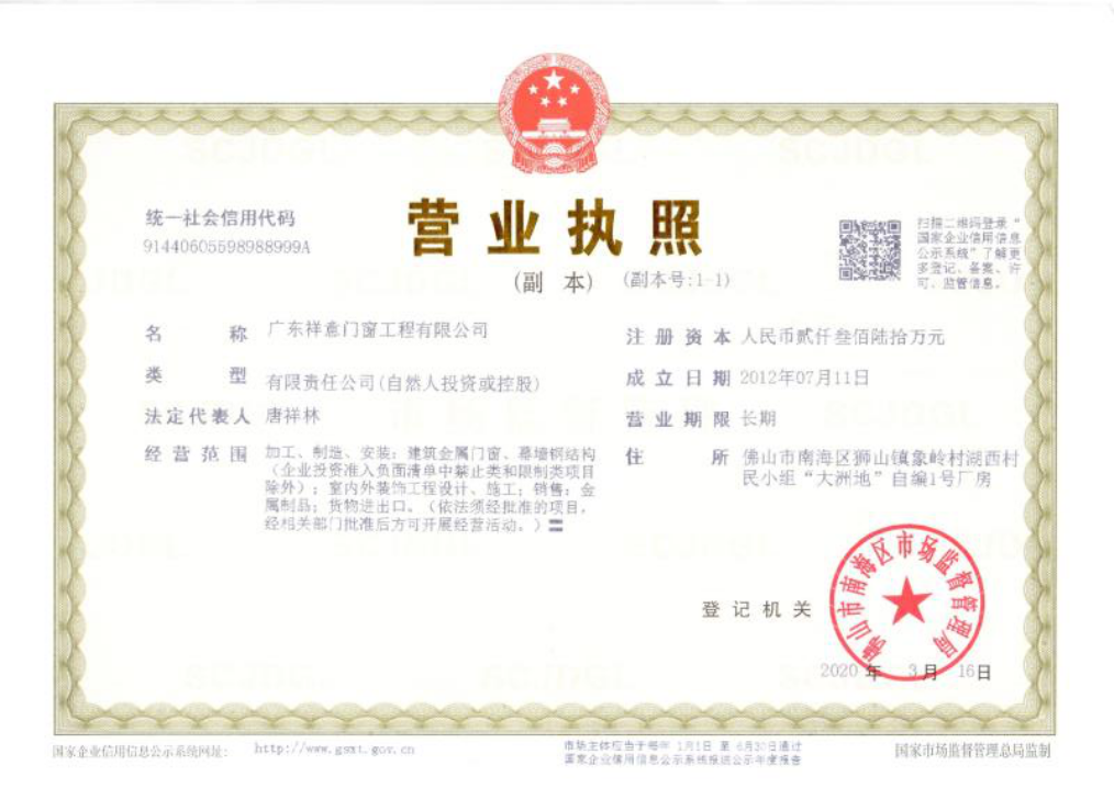 廣東祥意門窗工程有限公司是一家專注鋁合金門窗工程及門窗加工、制作的優(yōu)質(zhì)企業(yè)。公司憑著精湛的技術(shù)服務和優(yōu)良的售后服務,已成功完成多個優(yōu)質(zhì)項目。
